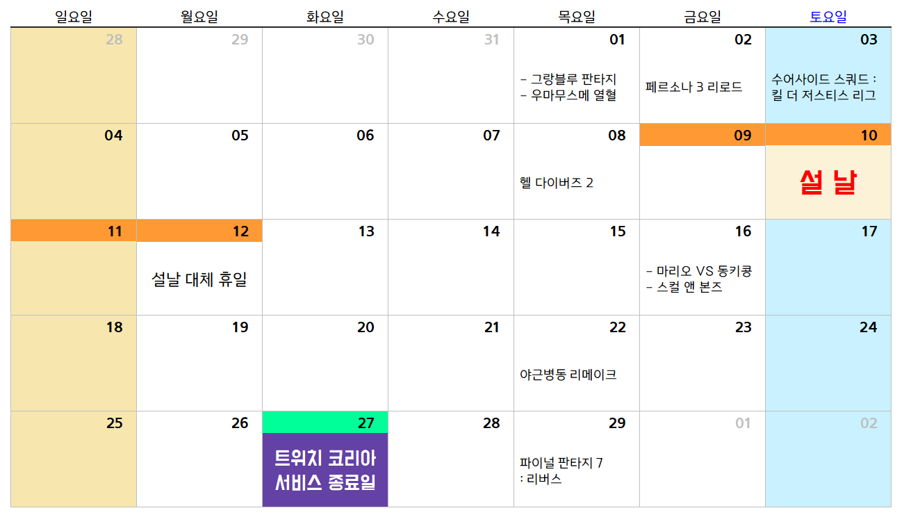 - 다나와 게임 발매 일정 : 바로가기