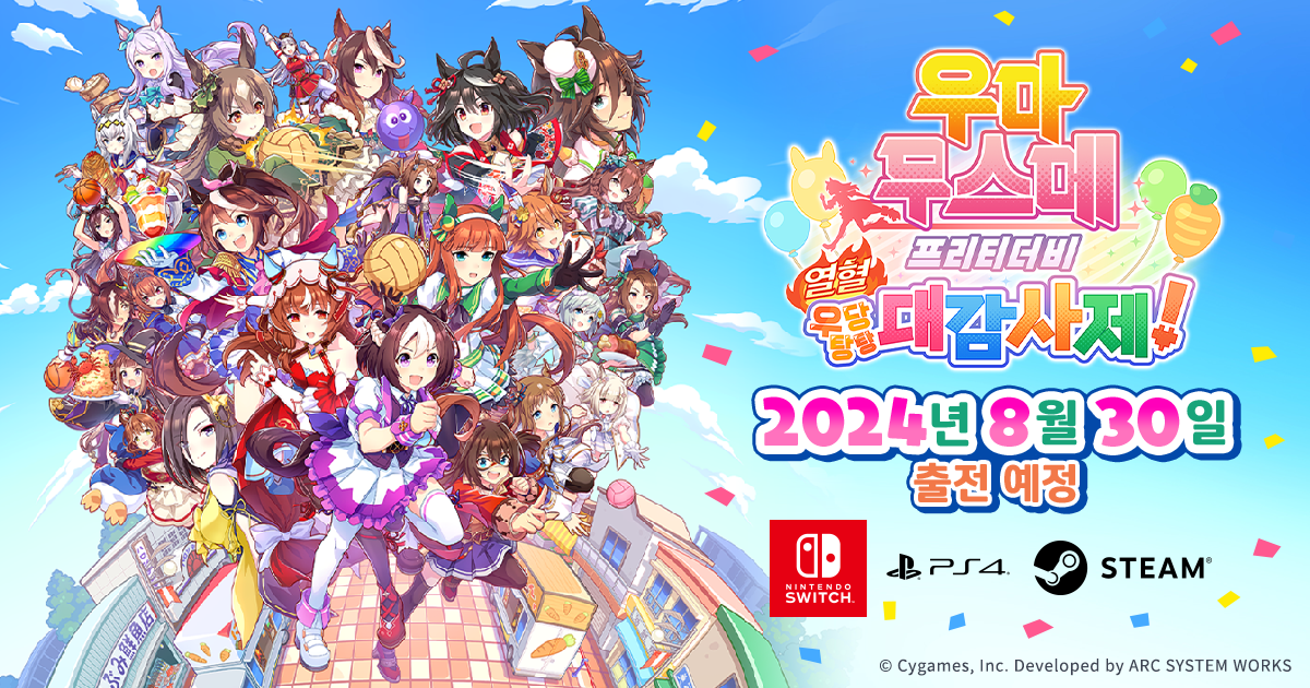 애니플러스 콜라보, 극장판 개봉에 이어 PC 스팀, PS4, 닌텐도 스위치로 출시되는 "우마무스메 프리티더비 열혈 우당탕탕 대감사제" 라는 게임이 출시될 예정입니다.