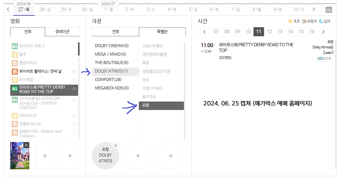 (+06.29 수정) 나중에 다시 확인해보니 돌비 애트모스 관 상영 안해주더라구요. 메가박스 예매페이지 오류인건지 모르겠네요. 포항까지 갈 필요 없어서 다행이지만, 대구까지 가서 봐야겠군요.
