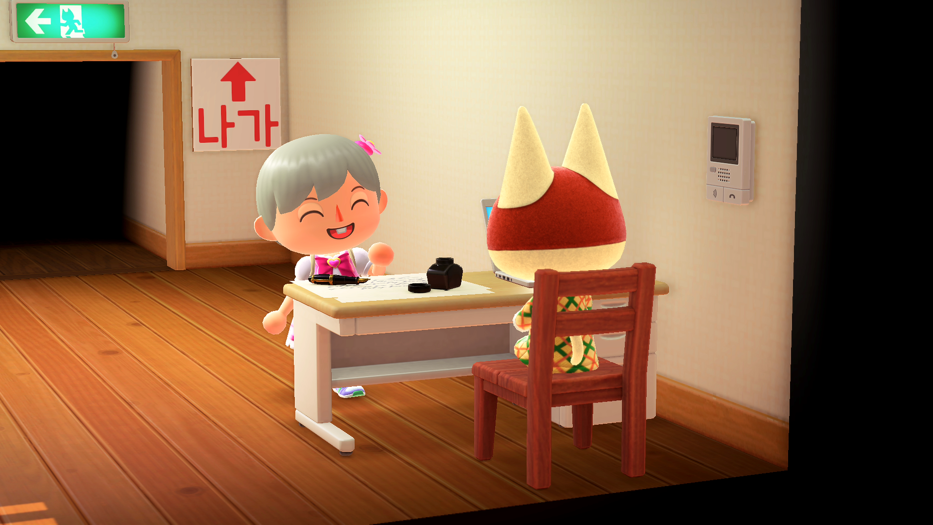 놀랍게도 여긴 투표장입니다. ㅋㅋㅋ 사실 파니의 섬에 놀라간 뒤, 방 하나를 꾸며봤습니다. 대충 학교 교실 느낌 나게 만들었습니다. 여울, 켄트, 예링, 빙티 등 몇몇 동숲 주민들이 선관위 투표사무원 역할을 맡게 되겠습니다. ㅋㅋㅋ
